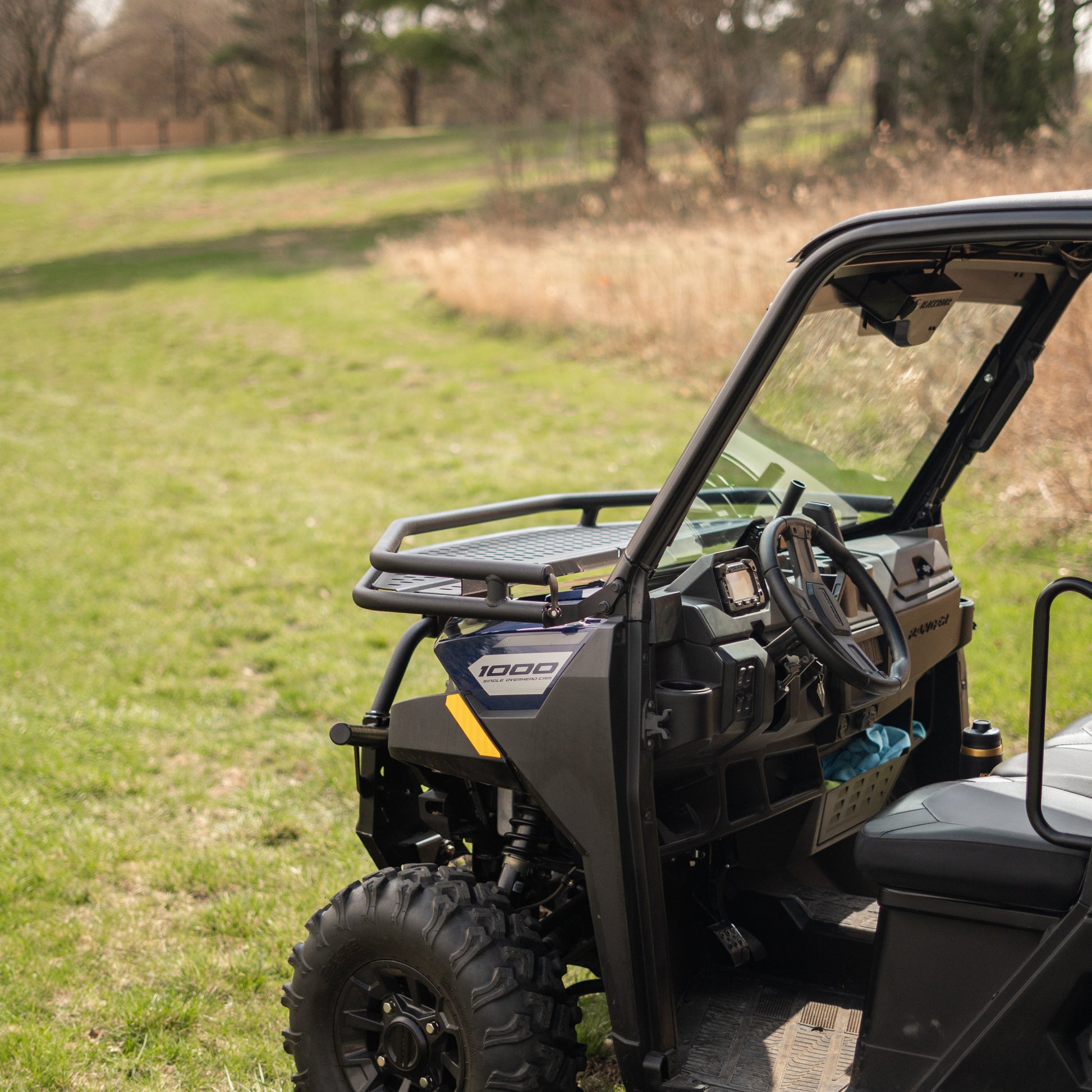 Built from .060 automotive-grade aluminum, the Rebel Front Rack fits units with or without doors and is engineered for durability without adding unnecessary weight to your vehicle. It is powder-coated in AAMA-certified matte black paint, offering superior protection against scratches, corrosion, and UV damage, ensuring long-lasting performance in the harshest environments.